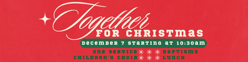 This December 7 starting at 10:30am, join us for a special day of unity and celebration as one church family! We’ll come together for a single service filled with joy and reflection—a time to celebrate the season with a message from our Christmas sermon series, worship, baptisms, and a performance by our Greenhouse Children's Choir. The Greenhouse nursery will be open for service and kids will join parents at tables after they sing. We will have special Christmas crafts for them to do.